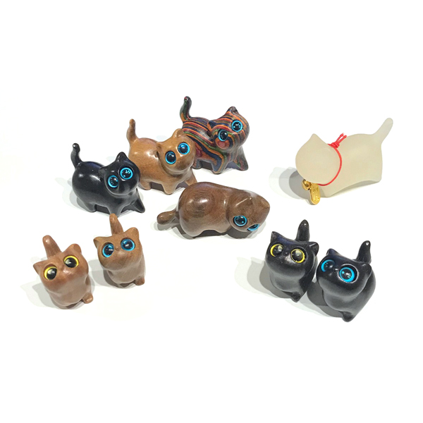 CAT 天然木にゃんこ ちびころ2 猫 木製 置物 キャット 蓄光石 歩き 見上げ 猫背
