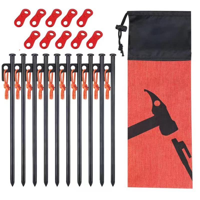 【強化版】ペグセット HUNDRUP テントペグ 30cm 10本セット 反射材入りロープ キャンプ ペグ 自在金具 収納ケース?