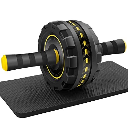 FEELCAT 腹筋ローラー 静音 ワイドローラー 高い安定性 初心者 女性 耐荷重200KG アブローラー 膝保護マット付き 筋力トレーニング器具 (イエロー)