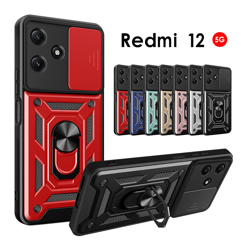 スマホケース Redmi 12 5Gケース スライド式 レンズ保護 redmi 12 5g ケース 背面リング バンパー レドミ12 5g ケース シンプル Xiaomi Redmi 12 5G カバー スタンド Redmi 12 5G ケース 耐衝撃 おしゃれ