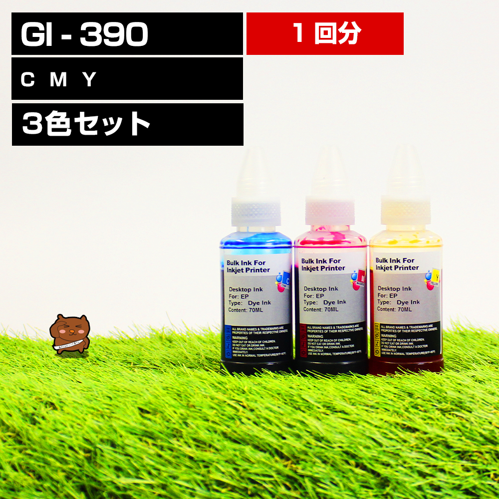 GI-390C GI-390M GI-390Y 3色セット 互換インクボトル ギガタンク用 対応プリンタ G3310 G1310 詰め替えインク シアン マゼンタ イエロー