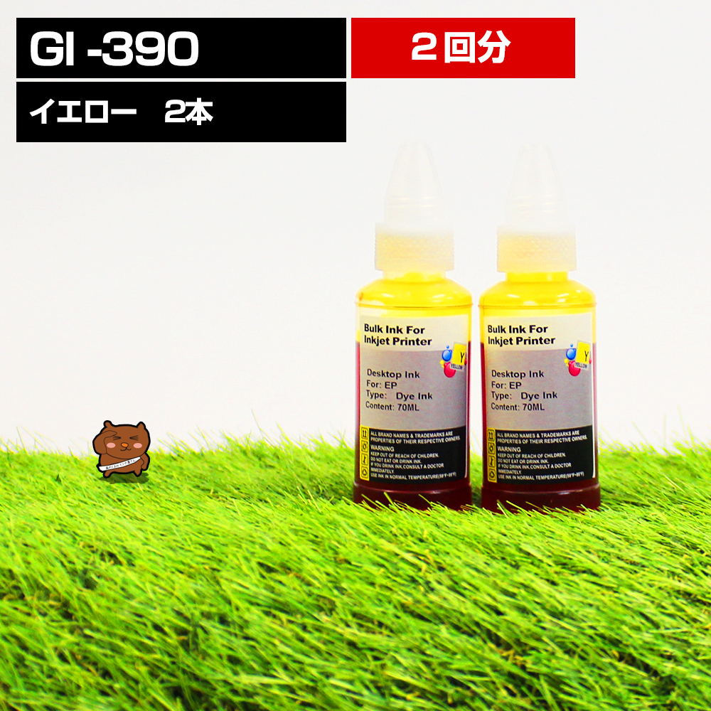 GI-390Y イエロー 2本セット 互換インクボトル ギガタンク用 対応プリンタ G3310 G1310 詰め替えインク イエロー