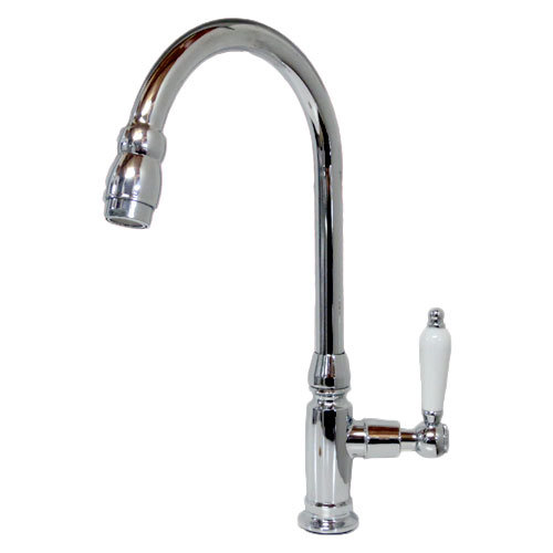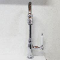 | ハンドルを90°回すことで水を出したり止めたりすることができます。 90°以上回そうとすると故障、破損の恐れがあります。 首(吐水口)は360°回転します。 |