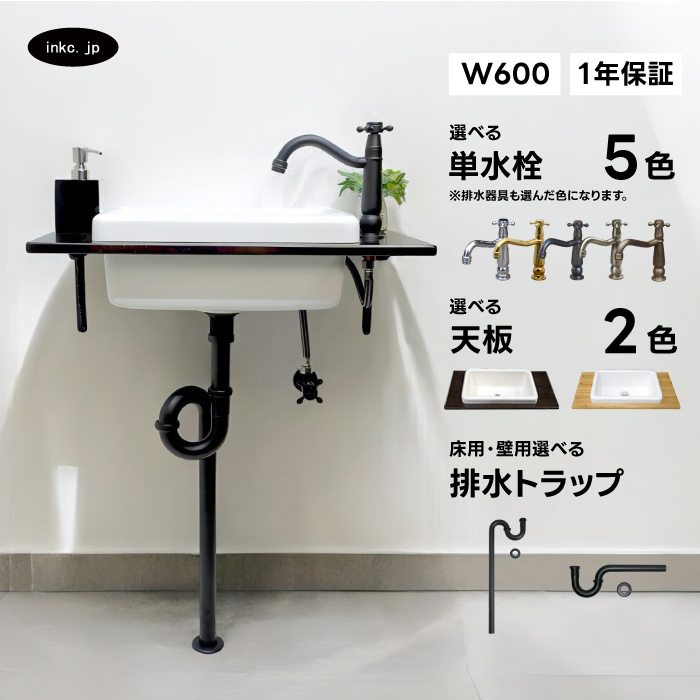 | セット内容 (素材) | 洗面ボウル(人工大理石) 天板(木) ブラケット(鉄) 排水栓(銅合金) 単水栓(銅合金) 排水トラップ(ステンレス) |