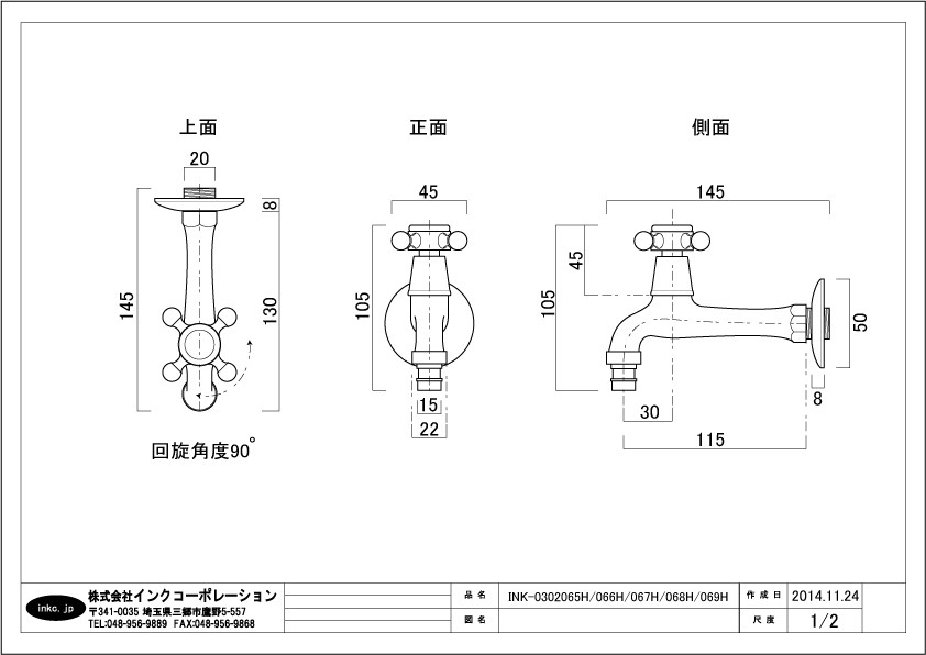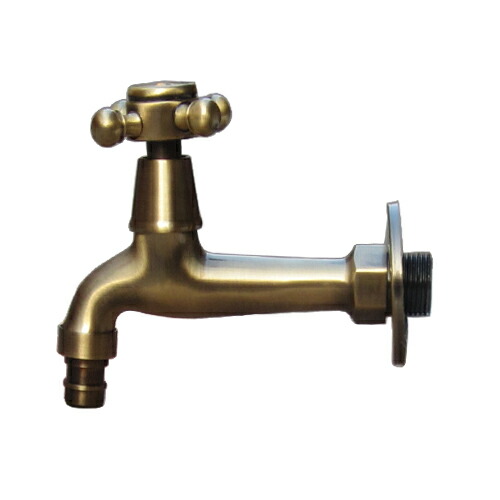 洗濯機用壁付け単水栓(蛇口・壁出し・壁用・単水栓・アンティーク・おしゃれ) 古金 INK-0302069H
