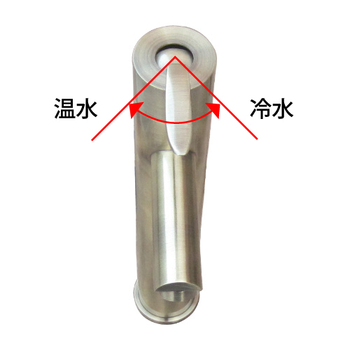 | レバーの左右で冷水、温水の切り替えが出来ます。 レバーを上げ下げして開閉します。 ※限度以上に開閉しようとすると破損する恐れがあります。 |