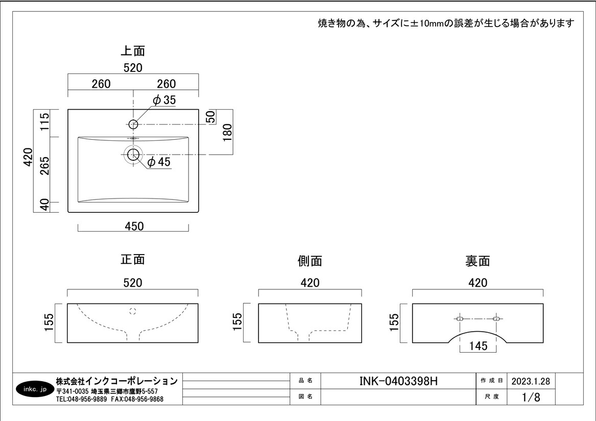 サイズ | 幅:520mm 奥行き:420mm 高さ:155mm |