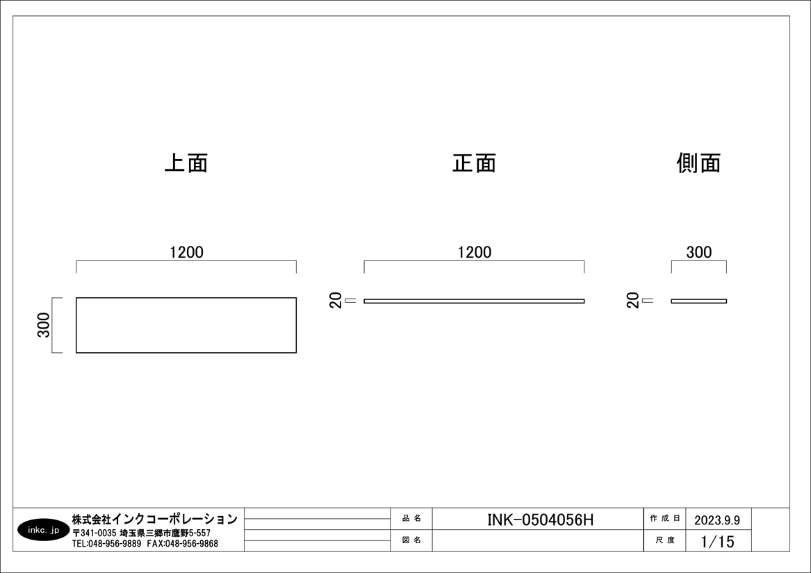 | 幅:1200mm 奥行き:300mm 厚み:20mm |