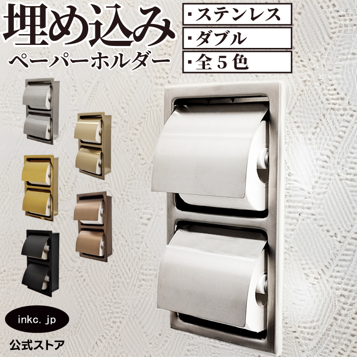 トイレットペーパーホルダー 埋め込み おしゃれ ダブル 省スペース 2連 縦 紙巻機 ステンレス 銀 シルバー サイズ 16.5 cm 31 cm 幅 165 高さ 310 INK-0801145H
