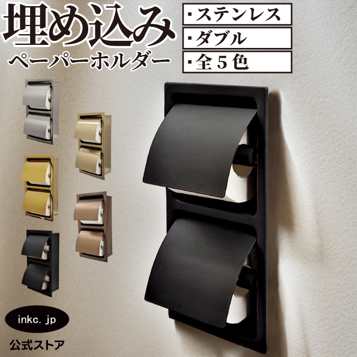 トイレットペーパーホルダー 埋め込み おしゃれ ダブル 2連 縦 紙巻機 リフォーム おすすめ 黒 ブラック サイズ 16.5 cm 31 cm 幅 165 高さ 310 INK-0801147H