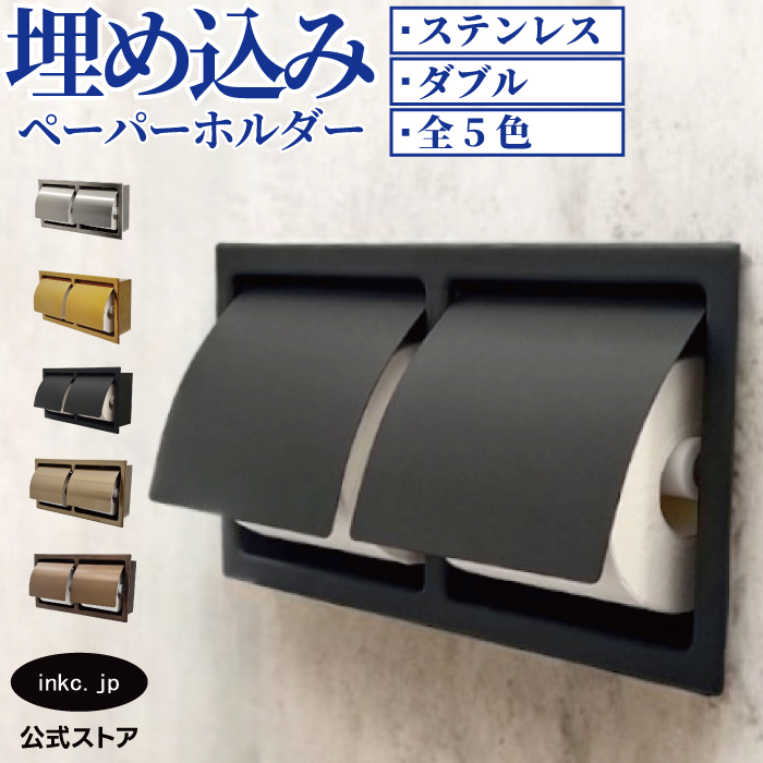 トイレットペーパーホルダー 埋め込み おしゃれ ダブル 2連 横 紙巻機 おすすめ 黒 ブラック サイズ 31 cm 16.5 cm 幅 310 高さ 165 INK-0801152H