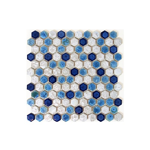 モザイクタイル 六角 陶器 おしゃれ 裏ネット張り 青色×白色 ブルー×ホワイト 11枚セット(約1m2) | 品番INK-YZ1C30