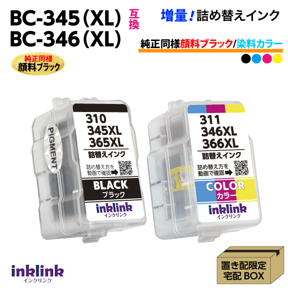 BC-345〔純正同様 顔料ブラック〕BC-346〔3色カラー〕2個セット キヤノン互換 詰め替えインク XL対応 詰替え キャノン TS3330 3130S TR4530