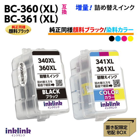 キヤノン BC-360XL〔顔料ブラック〕BC-361XL〔大容量 3色カラー〕の2個セット 詰め替えインク BC360 BC361 詰替え PIXUS TS5430 TS5330