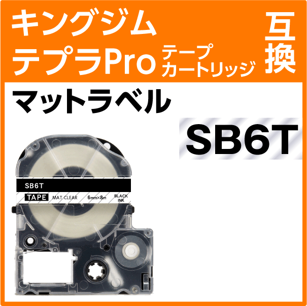 キングジム テプラPro用 互換 テープカートリッジ SB6T マットラベル 透明地 黒文字 6mm