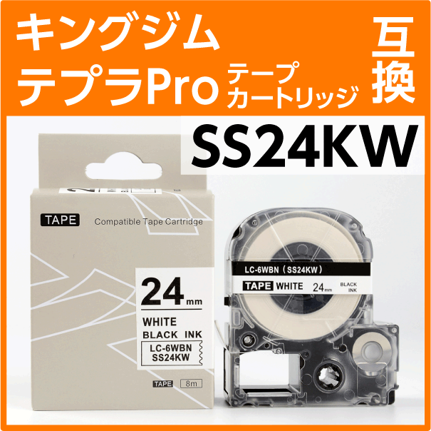 キングジム テプラPro用 互換 テープカートリッジ SS24KW〔SS24Kの強粘着〕24mm幅 白地 黒文字