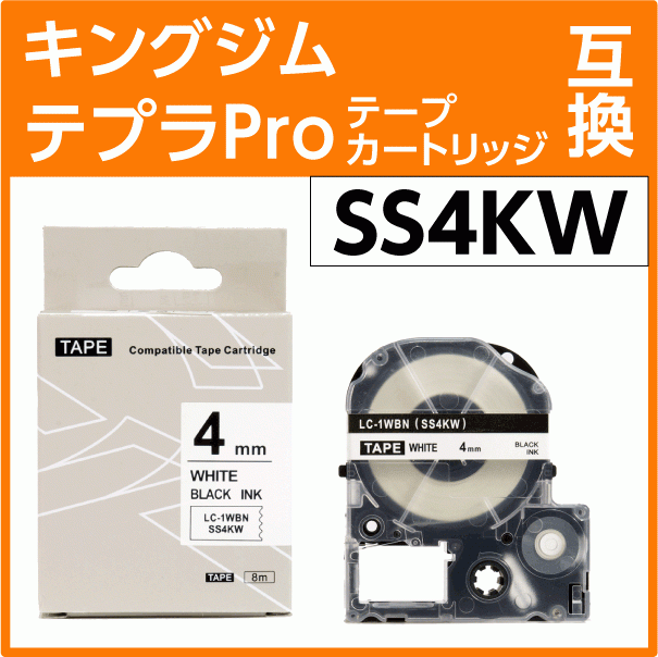 キングジム テプラPro用 互換 テープカートリッジ SS4KW〔SS4Kの強粘着〕4mm幅 白地 黒文字