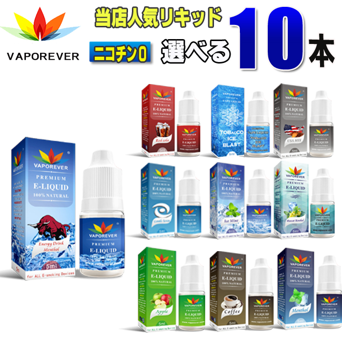 電子タバコ リキッド 人気リキッド10本選択 5ml VAPOREVER ヴェポレバーEMILI エミリ eGo AIO X6 X7 X8J 電子たばこベポレバー 高品質リキッド メンソール VAPE ベイプ ベープ 激安 禁煙グッズ 禁煙 タール ニコチン0