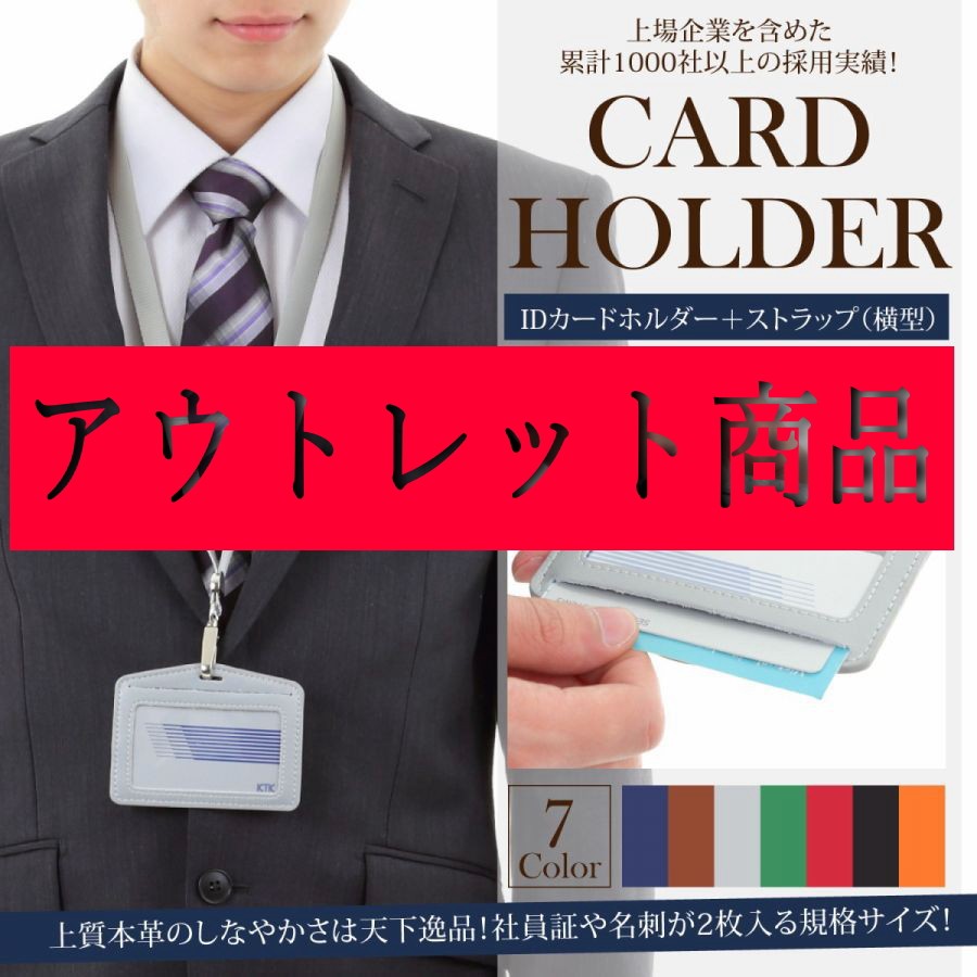 | 素材 | 本革 | | 機能 | 大切なカードはフォルダーに入れて首にかけて持ち歩く!今やオフィスワークの定番スタイル!通勤時や会社内の入退出で今や必須のカードホルダー! | | 特徴 | 本革のカードホルダーにストラップはナイロン製!革のストラップよりお手軽で実際に着用してみると軽くて首にフィットするナイロン製のストラップは実用的です。 | | サイズ | 名刺・身分証・IC・クレカ・診察券など全てに収納可(横型) | | 使用事例 | スーツや仕事着だけじゃなく、革鞄や革小物にもこだわる20〜50代には手頃な価格なカードケースをお探しの方も多いはず。これさえあれば、朝夕の自動改札での通過がスムーズ、職場の入退出や会議も快適にサポートします。 |