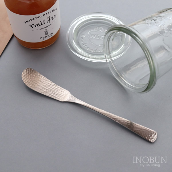 和の暮らしに似合う槌目デザインのバターナイフ。 ぼこぼことしたこの質感がなんともいい感じ。やさしい印象が和食にしっくり馴染みます。 つちめ加工のため、つや消しの効果があり、落ち着いた印象は陶器との相性もぴったりです。 しっとりとした和の暮らしを楽しむなら、バタースプレターもこんなぬくもりのあるデザインで。 あんバターや毎日のジャムなど、使うたびにその空気感に癒やされるアイテムです♪ |