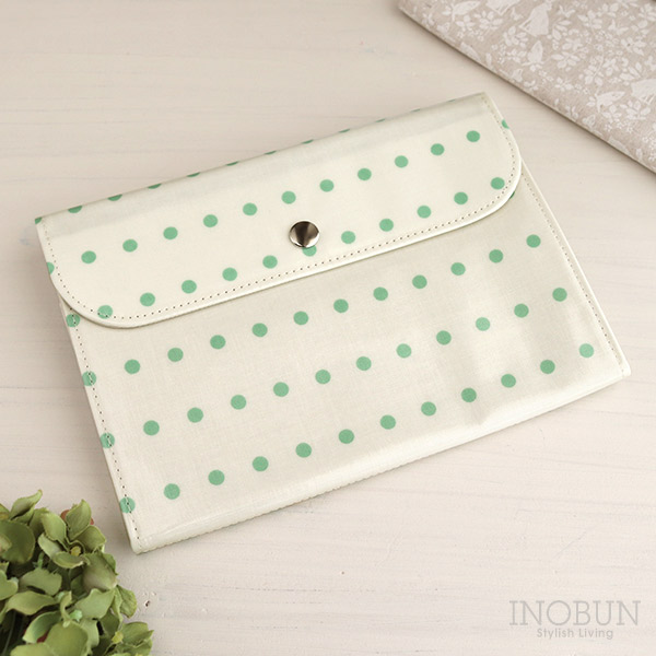 SK 母子手帳ケース グリーンドット柄 じゃばらタイプ INOBUN イノブンオリジナル