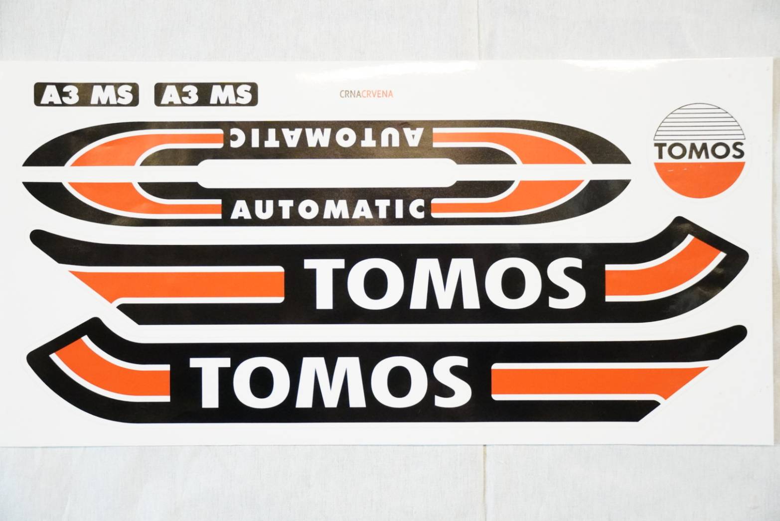 ※問題なく貼り付け可能ですが、日本国内のトモスとステッカーのデザインが少し異なります。