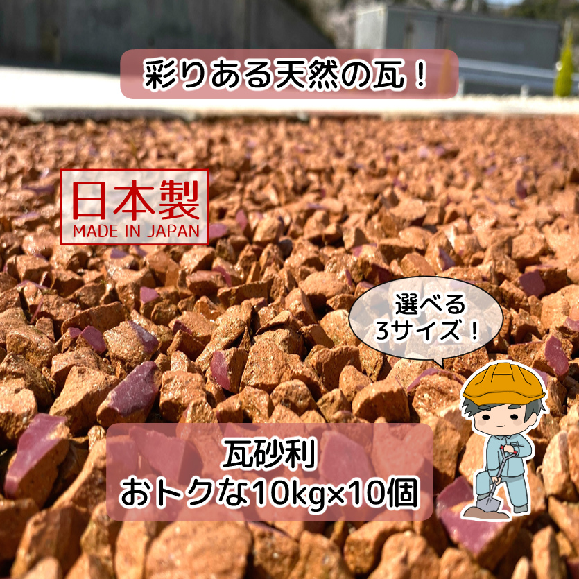 瓦砂利 選べる3種類 100kg 【10kg×10袋】 国産 瓦チップ 瓦 砂利 レンガ砂利 防犯砂利 庭 園芸 花壇 レンガチップ 庭石 雑草 駐車場 墓 除草 大量 爆買