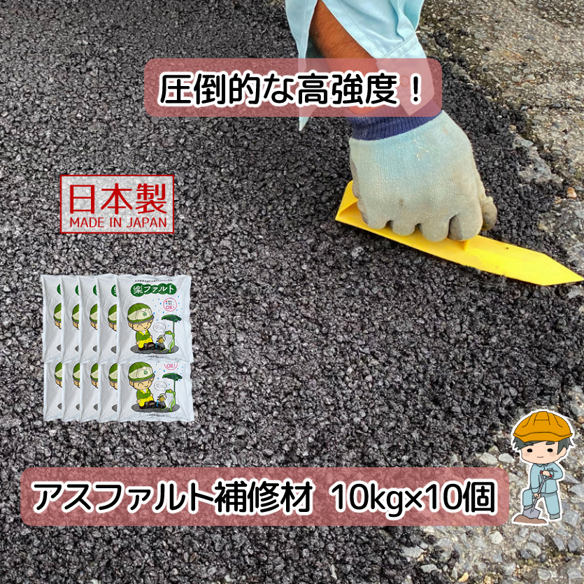 アスファルト 補修材 100kg 【10kg×10袋】 大林道路 補修 陥没 補修 舗装 工事 駐車場 舗装材 雑草対策 水たまり DIY くぼみ 道路 ひび割れ 大量 爆買