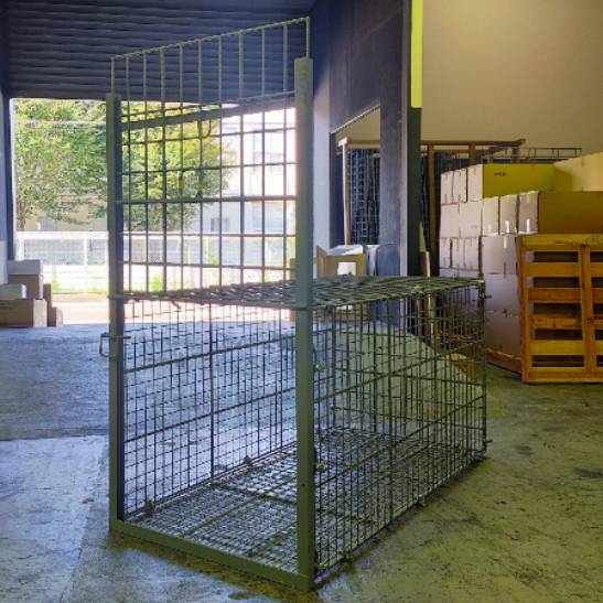 〇イノシシやシカなどの中〜大型獣捕獲の標準サイズより一回り小さめの、幅0.8m×高さ0.8m×奥行1.6mです。