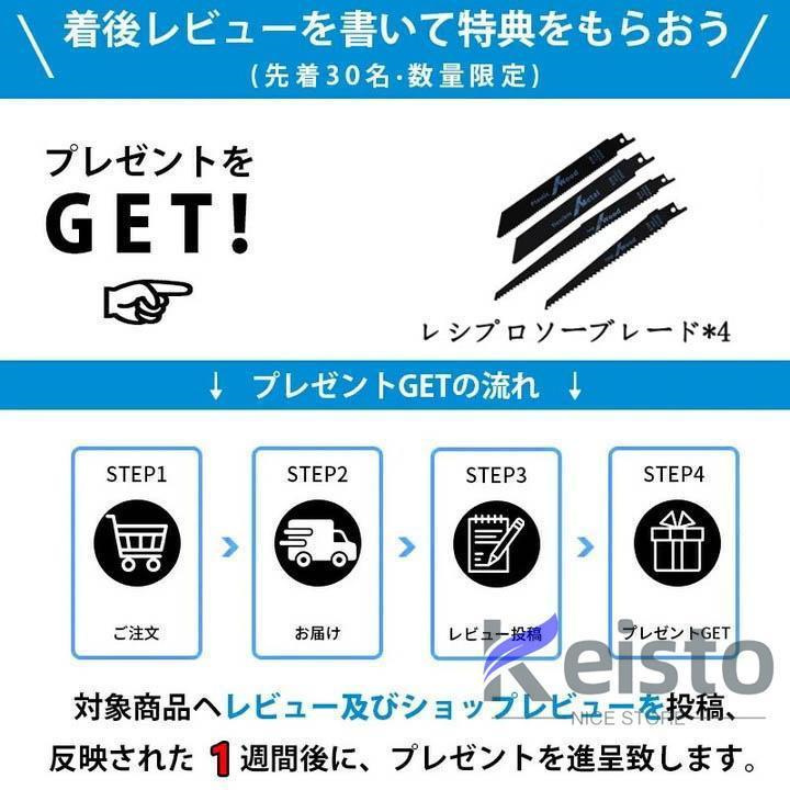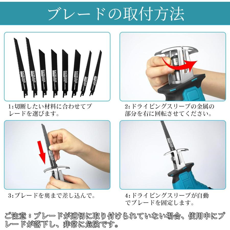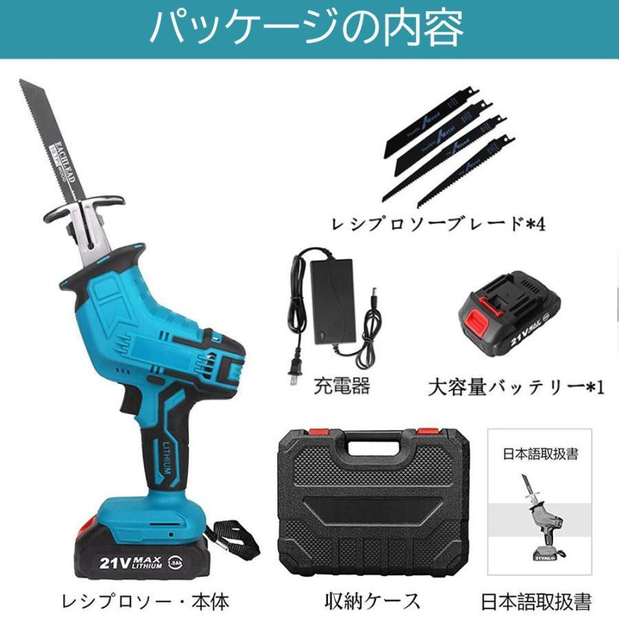 レシプロソー・本体1個、レシプロソーブレード1個、21vバッテリー1個、充電器1個、収納ケース1個、日本語取扱説明書1個