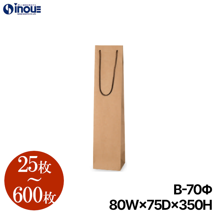 紙袋 ワイン用 手提げ袋 ボトルバッグ ワインバック ラッピング 25枚 100枚 600枚 B-70Φ 80×75×350
