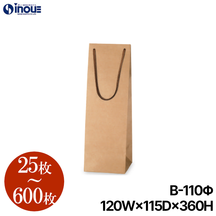 ワインバック 紙袋 ワイン ラッピング クラフト紙 茶色 おしゃれ 25枚 100枚 600枚 B-110Φ 120×115×360