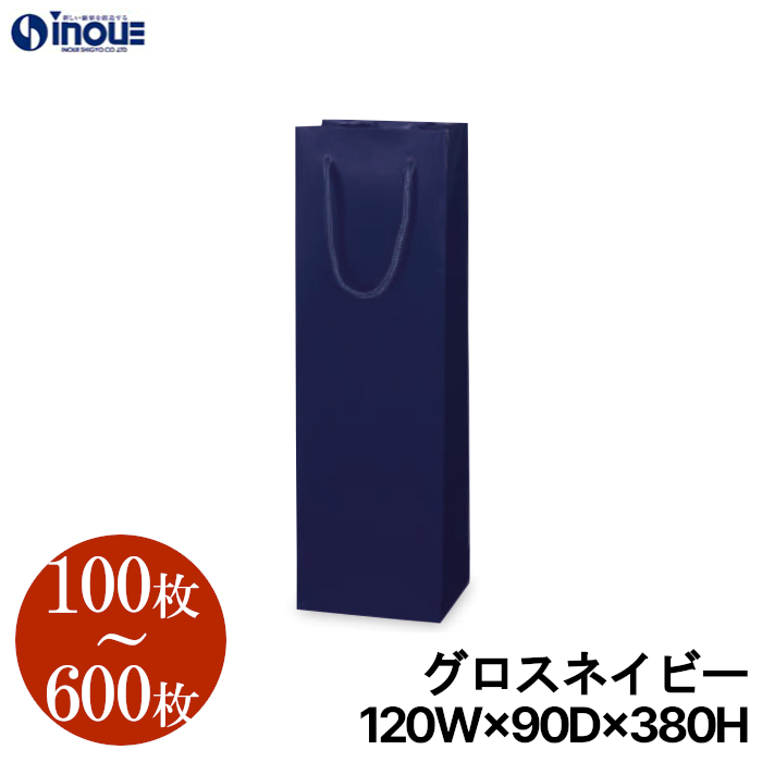 紙袋 ワイン用 ワインバック ワイン ラッピング 酒用 100枚 600枚 FLEX グロス ネイビー 120×90×380
