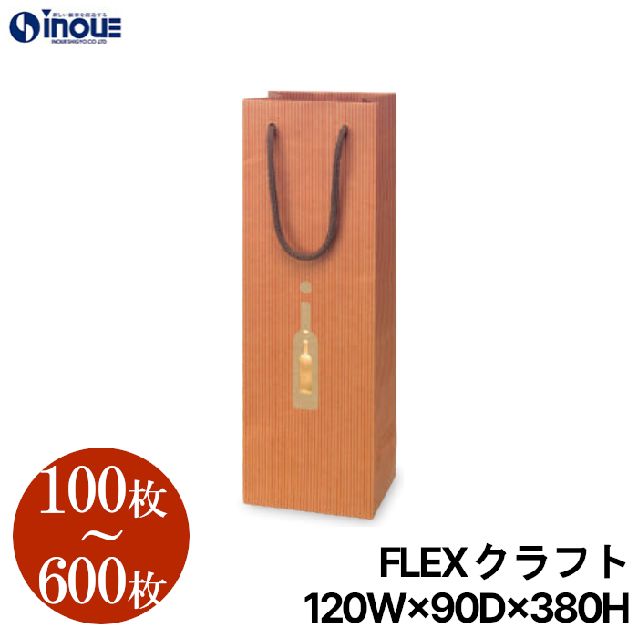 紙袋 高級 クラフト紙 ワインボトル ワイン 手提げ袋 100枚 600枚 FLEX クラフトペーパー 120×90×380