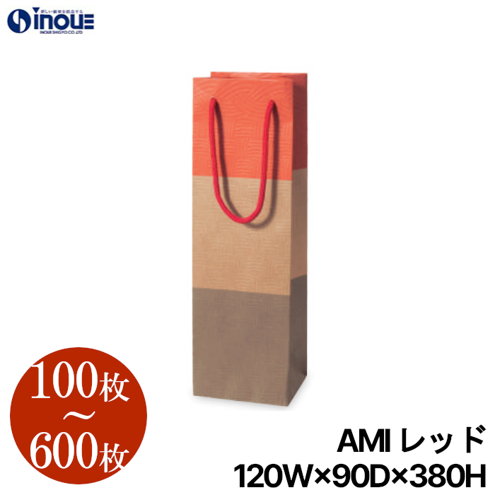 ワイン ラッピング ワイン用 手提げ袋 紙袋 ワインボトル 100枚 600枚 AMI レッド 120×90×380