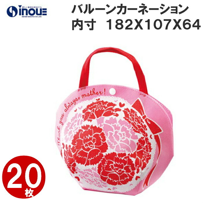 不織布 手提げ袋 母の日 バルーンカーネーション 20枚 内寸188x148x64|ラッピング 袋 手提袋 ラッピング用品 包装 ギフト ギフトバッグ ギフトバック 小袋 …