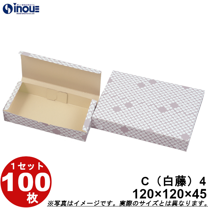 和菓子サービス箱 紙箱 パッケージ 化粧箱 折組式 カップ4個用 白藤 C4 120W×120D×45H 1セット100枚