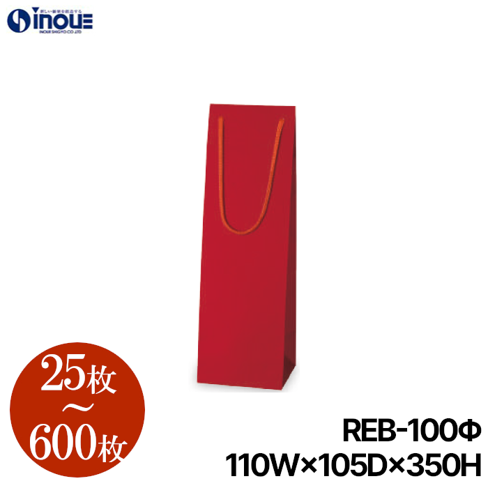 ワイン ラッピング ワインバック ワイン用 紙袋 赤 25枚 100枚 600枚 REB-100Φ 110×105×350