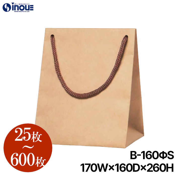紙袋 ミニサイズ 小さい 茶色 手提げ 小 ギフト用 プレゼント 25枚 100枚 600枚 B-160ΦS 170×160×220