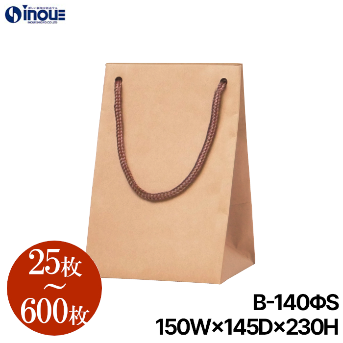 【商品名】紙袋 小さい おしゃれ プレゼント用 ラッピング マチ広 25枚 B-140ΦS 150×145×230