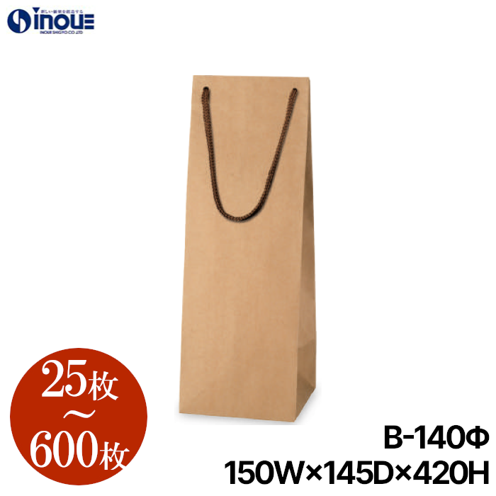 紙袋 ワインボトル 高級 酒用 縦長 おしゃれ 茶色 クラフト 25枚 100枚 600枚 B-140Φ 150×145×420