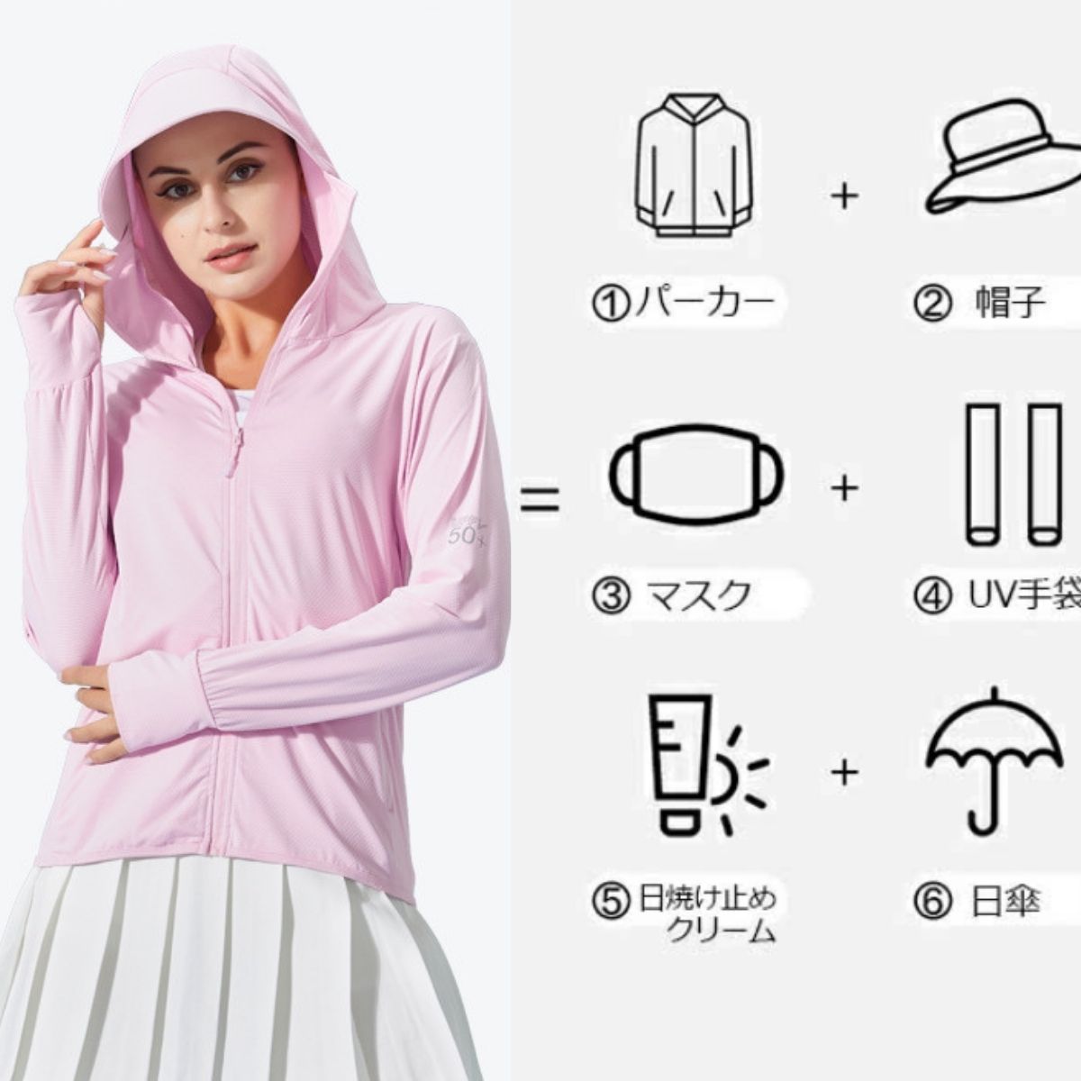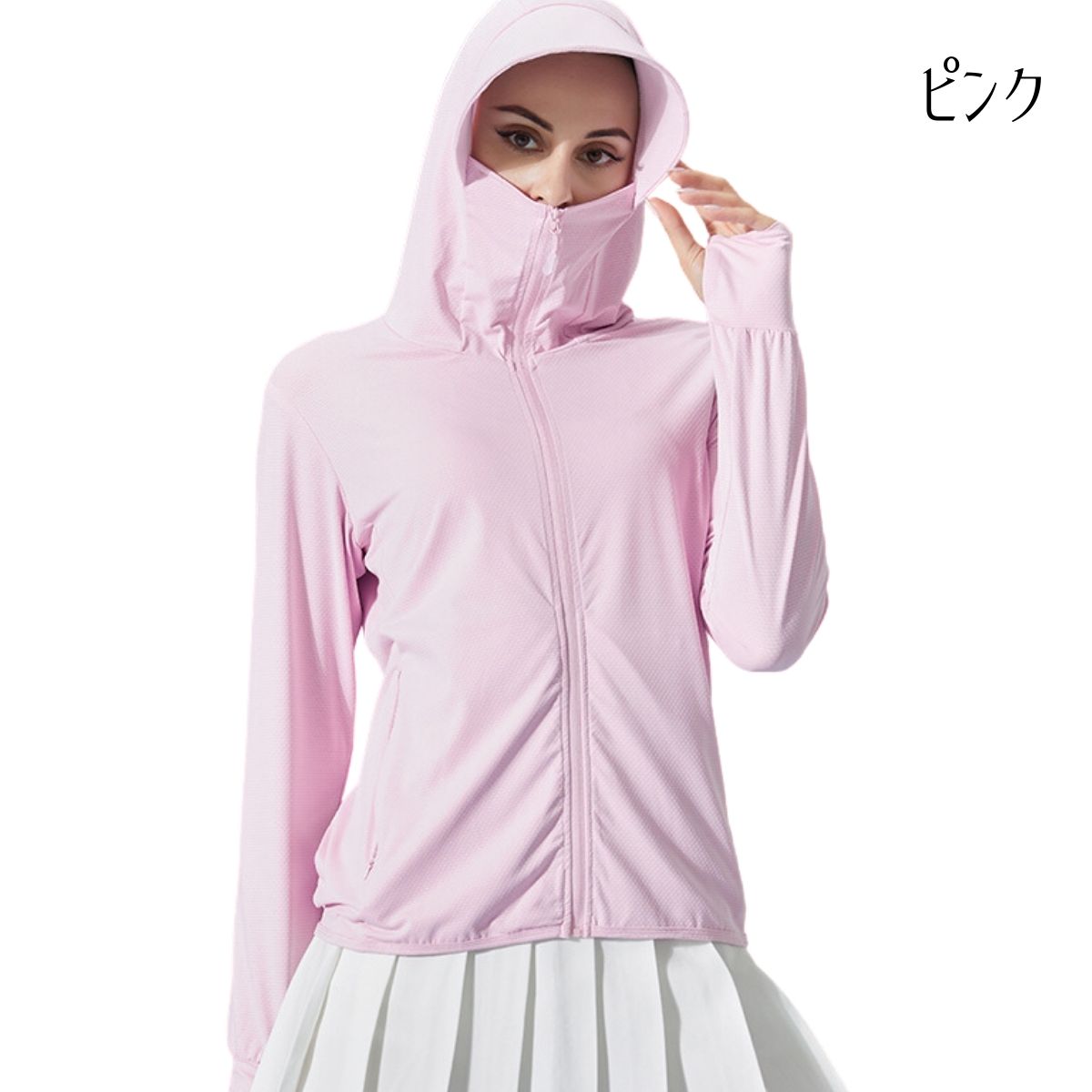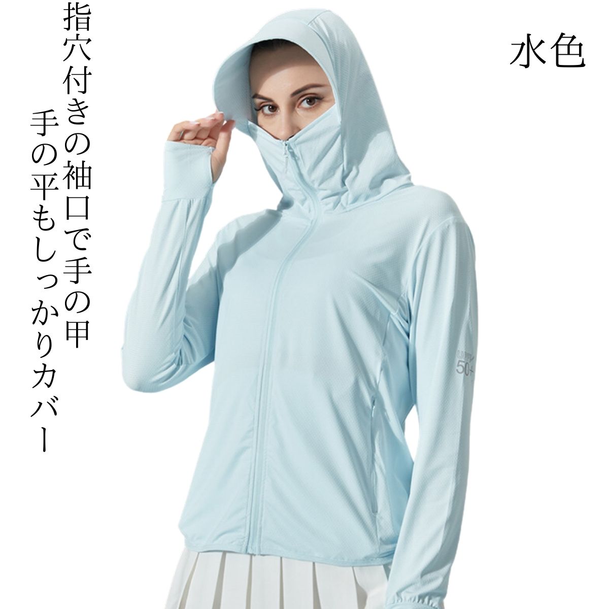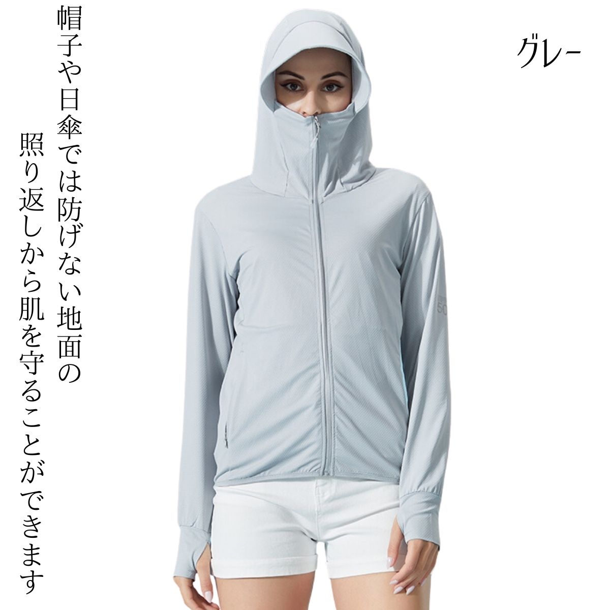 | 店長からのコメント | UV パーカー ★女子の春夏必須アイテム、UVカットパーカーに、トレンドの「長袖カーディガン」が登場! 普段着に合わせてアレンジしながら紫外線からプロテクト。 日中の気になる首元、襟元もプロテクト。 ★大きめのツバ付きフードで頭からフェイス、首周りをガード。 ★樹脂製のしっかりしたツバ芯付き 鼻先まであがるファスナー付きでマスクも不要。 口元のファスナーの肌あたりストレスフリー。 指穴付きの袖口で手の甲、手の平もしっかりカバー。 伸縮性に富んで動きやすい。 ★全生地薄くて通気性抜群で速乾性も良い。軽やか素材でゆったり着心地。 鼻先まで付いたファスナーを上まで閉じれば顔をすっぽり覆うことができる。 帽子や日傘では防げない地面の照り返しからも肌を守ることができます。 紫外線カット+通気性の良い冷感素材の高機能パーカー。 ★落ち感の素敵な編地がとても柔らかな肌あたりで肌にも負担をかけないので、まるで着ていないかのような感じです。 暑い時期にもさらりと軽く涼しく着られるんです。 ★水着のコーデだけでなく、旅行、山登りなどの普段使いや、トレーニング、ランニングなどの陸上スポーツなど屋外での使用に最適なUVカットです。 フェスカバーとフード付きですので、首元までしっかり紫外線から守れ、さらに袖丈やや長めデザインロングスリーブタイプで手首もしっかりと覆えます!! ★UVカット率も安心の「全カラーUV遮蔽率99%以上」 繊維自体にUVカット効果のある物質を含ませることで紫外線を吸収して熱や光に変換することで肌を守っています。 洗濯をしても、効果は落ちず、生地に傷みがでない限り、永久的にUVカット効果が続けます。 |