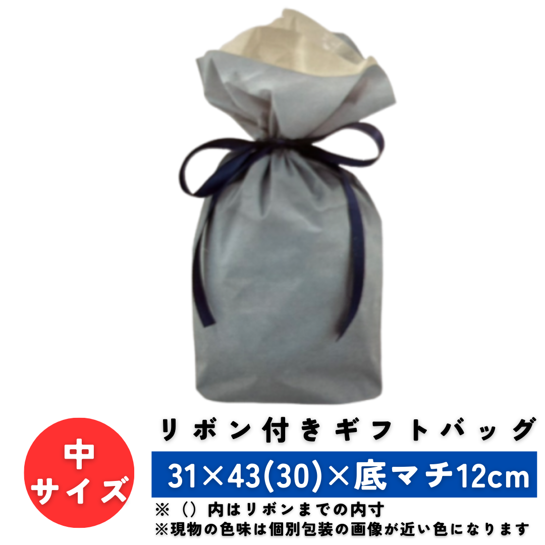 ギフトバック ラッピング袋 中 梨地 リボン付き マチ付き