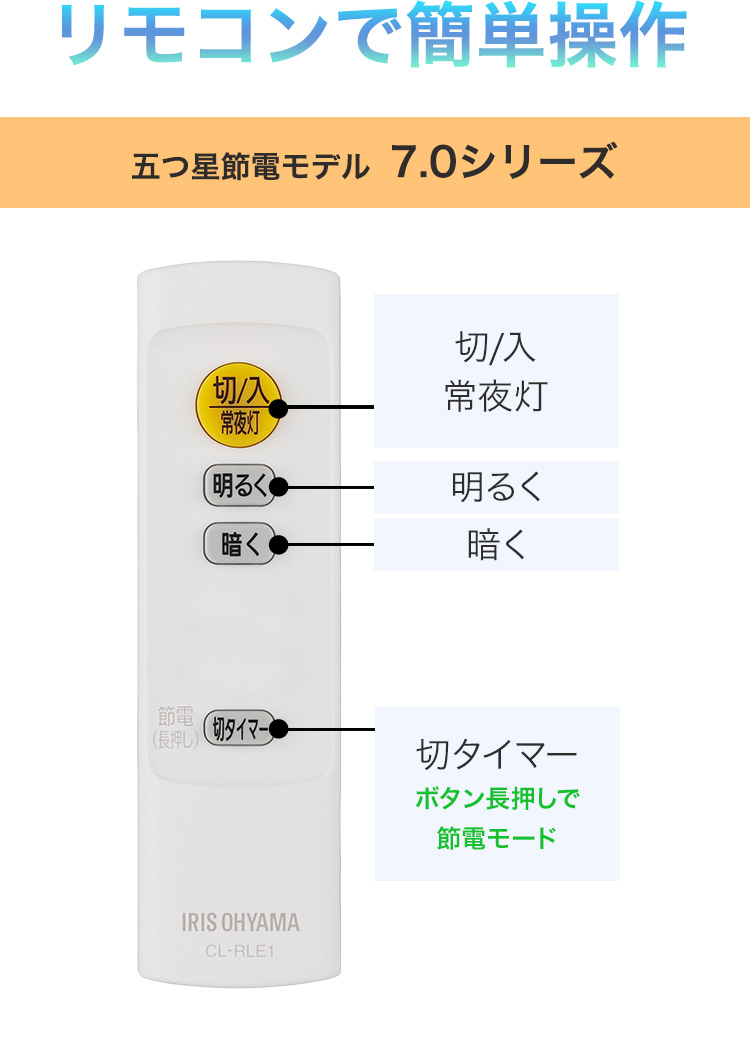 ラスト点灯:最後に調光ボタンで調節したときの明かりを再現し点灯。