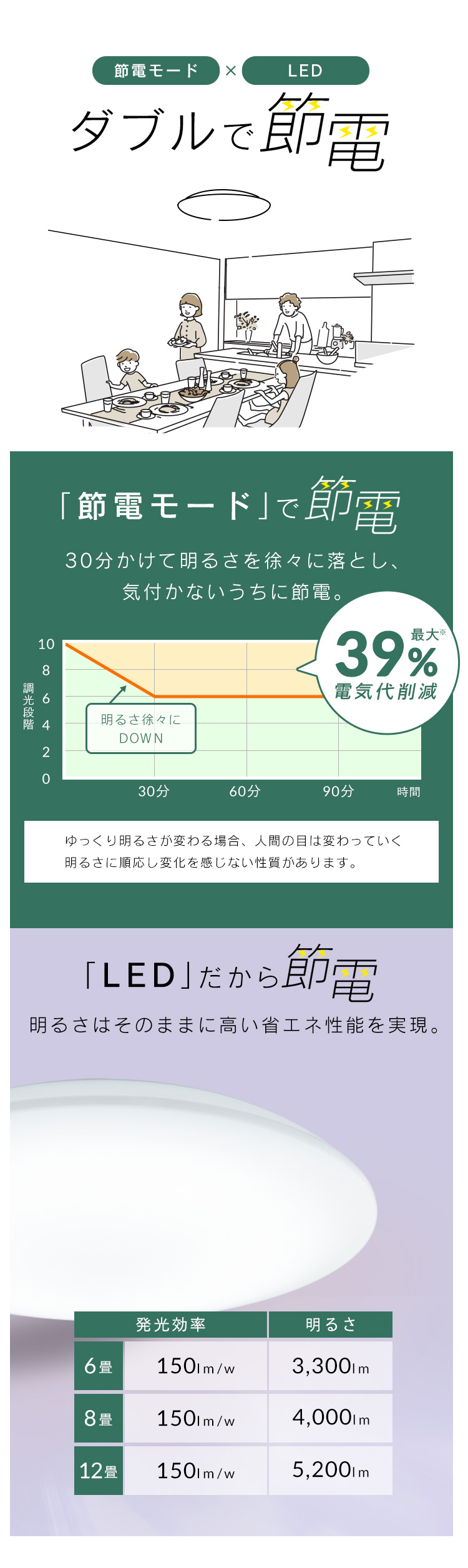 30分かけて明るさを徐々に落とし、気付かないうちに節電。