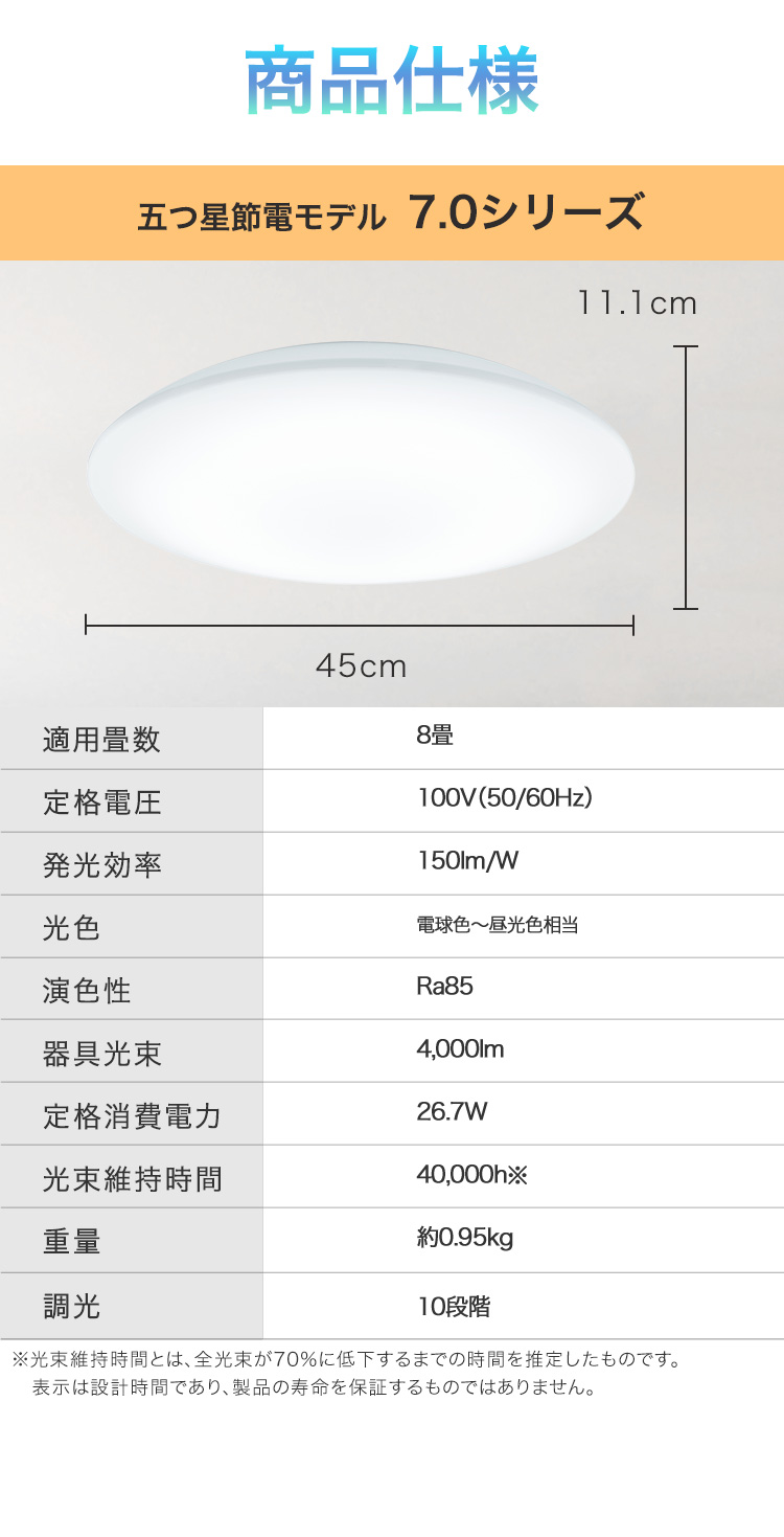 ※光束維持時間とは、全光束が70%に低下するまでの時間を推定したものです。