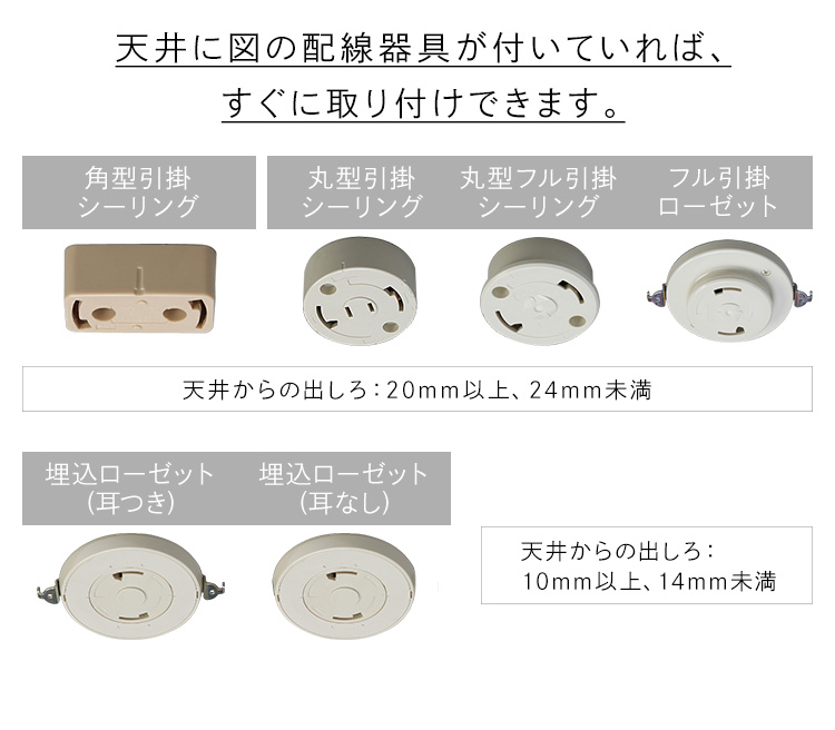 天井に下記の配線器具が付いていれば、すぐに取り付けできます。