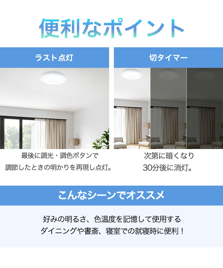 メモリ点灯機能:お好みの明るさを記憶して再点灯。
