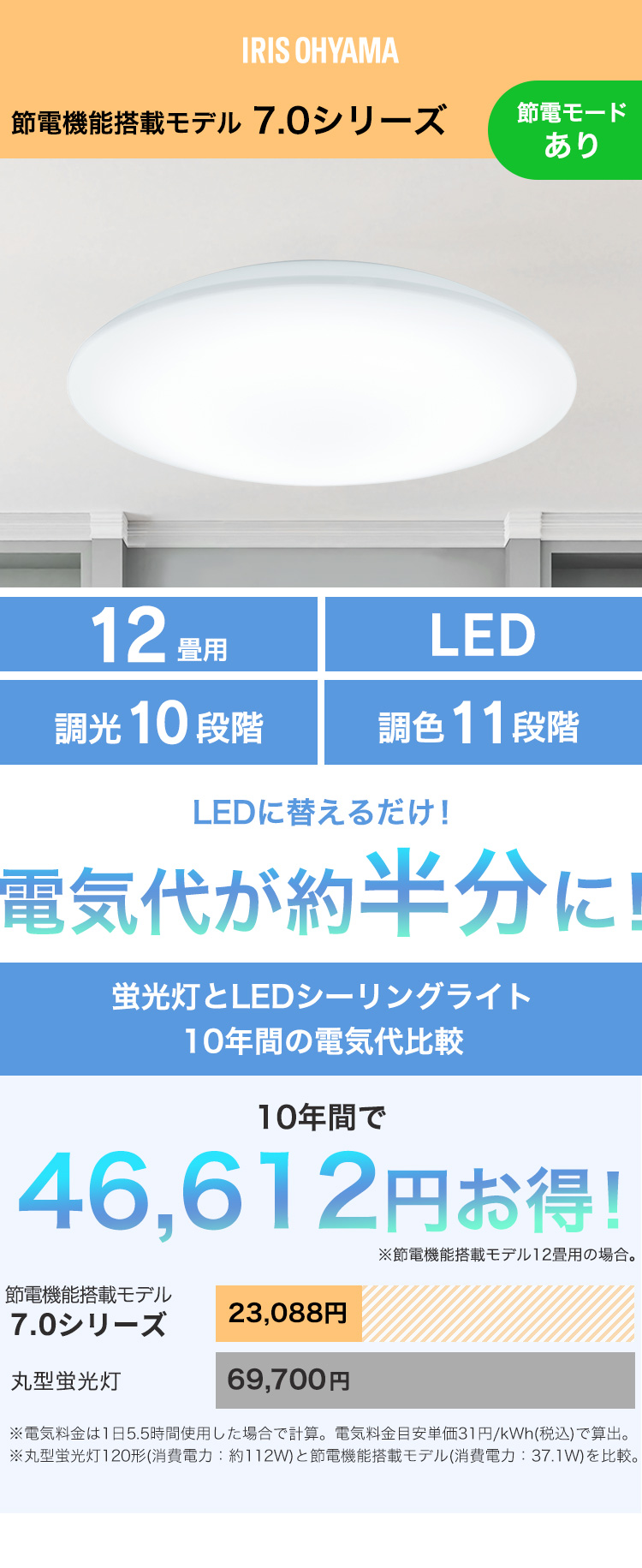 [検索用:シーリングライト led 12畳 調光調色 省エネ 節電モード搭載 照明器具 led照明器具 リビング照明 おしゃれ アイリスオーヤマ 4967576782432]