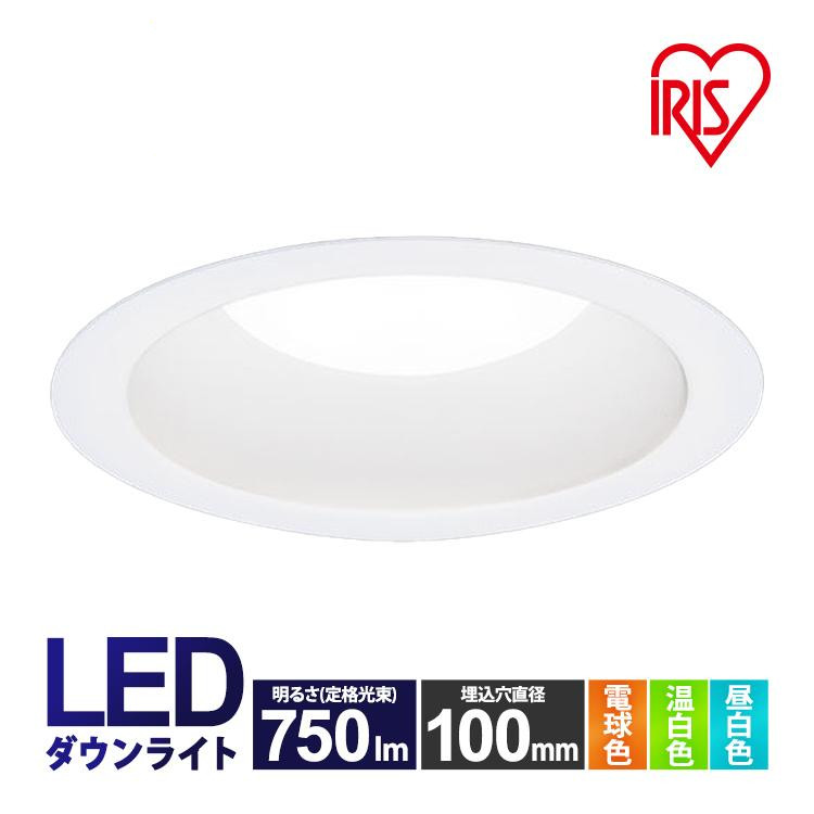 ダウンライト LED 100φ 穴100mm 埋込型照明器具 電球色 昼白色 温白色 750lm 埋め込み型 LED照明器具 安い 高断熱 高気密 断熱 遮音 アイリスオーヤマ